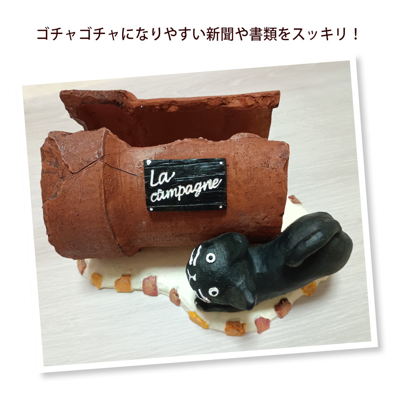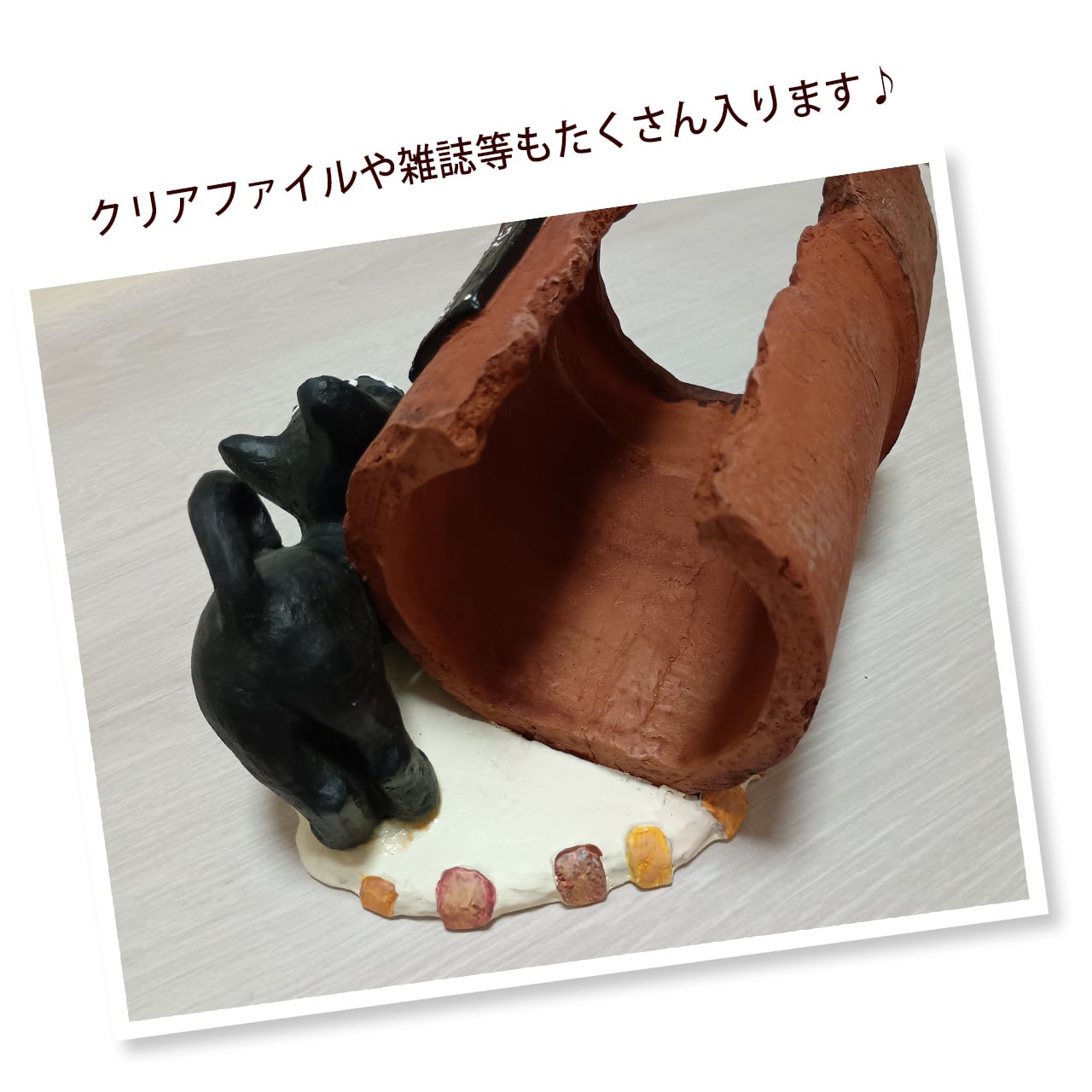 ハンドメイドの風合いが素敵な黒猫ちゃんの新聞・書類立てです♪