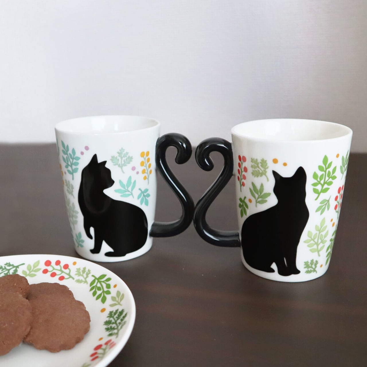シルエットデザインがおしゃれな猫ちゃんのマグカップセット。