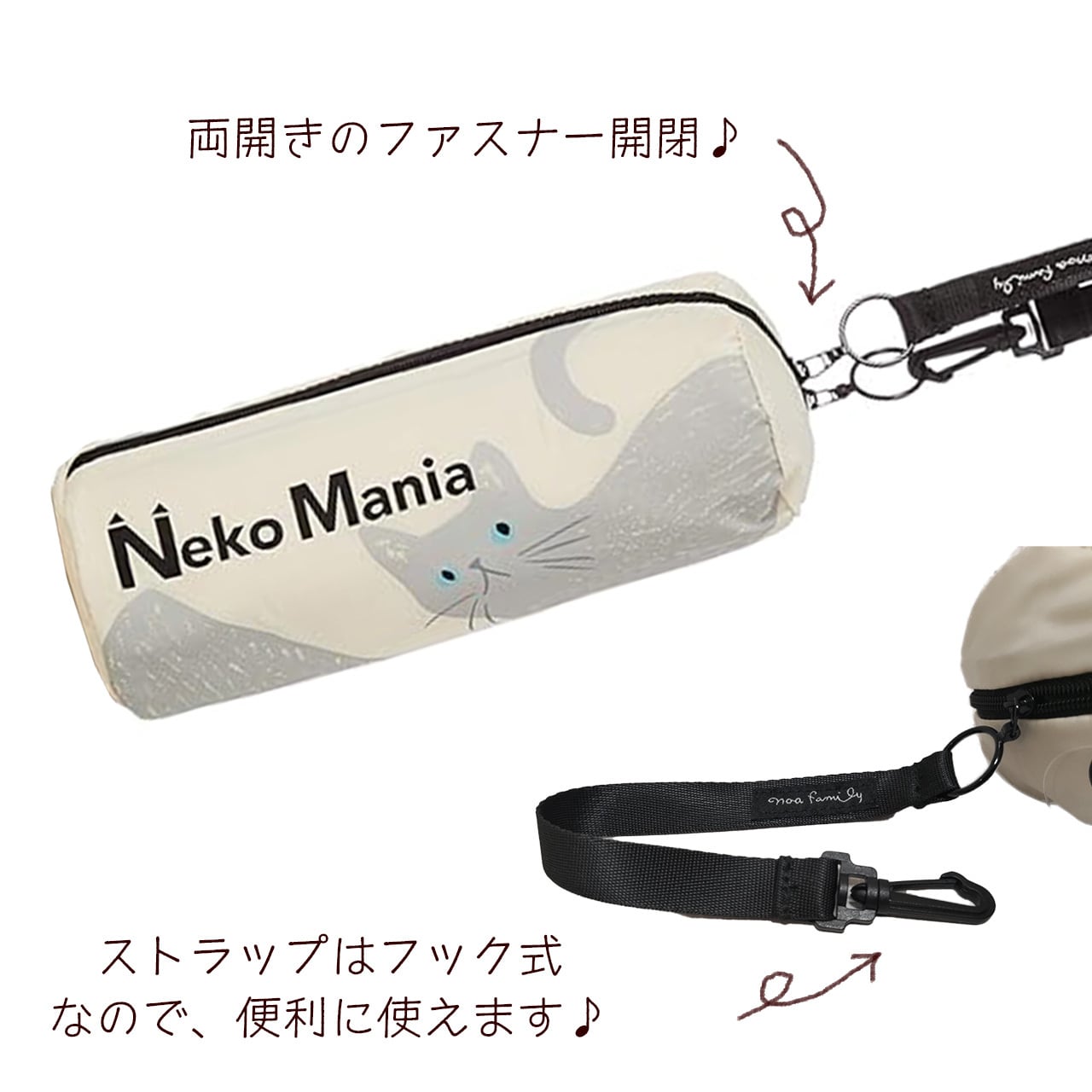 おすまし顔の猫ちゃんが可愛いボトルポーチです。表面は撥水生地を使用、内側はアルミの断熱素材を使用しているので、断熱・保冷したいグッズの収納に大活躍♪ ダブルファスナーで大きく開くポーチ型なので、ペットボトルやマイボトルの他にも使いやすい保冷ポーチです。ストラップ部分は、フック式でバッグなどに付けておくこともできて便利です。
