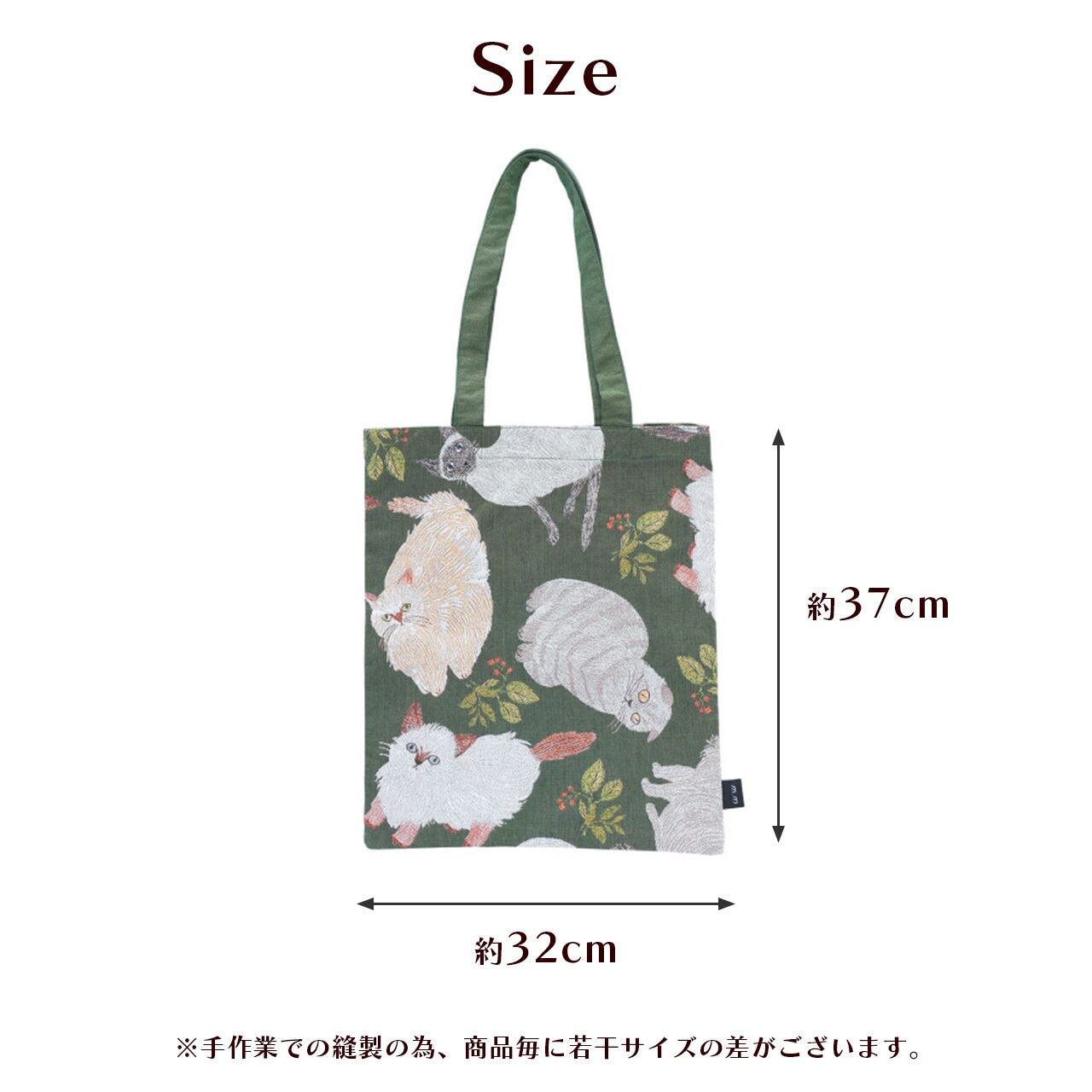 松尾ミユキ 猫柄 トートバッグ Rectangle Cat&Leaf ゴブラン織り