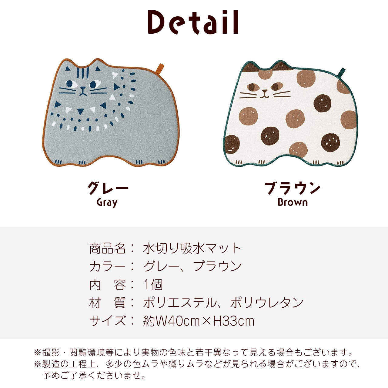 猫柄 水切り 吸水マット キッチン雑貨 キッチングッズ 台所用品 猫雑貨
