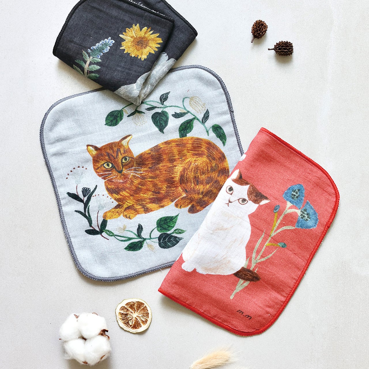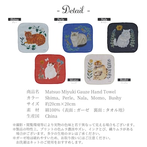 #猫柄 #ねこ #ハンカチ #タオル #ガーゼ #ハンドタオル #猫 #おしゃれ #松尾ミユキ #Matsuo Miyuki #Gauze Hand Towel #Shima #Perle #Nala #Momo #Bushy #ねこ好き #ギフト #プレゼント #猫雑貨 #猫グッズ #日用品 #277