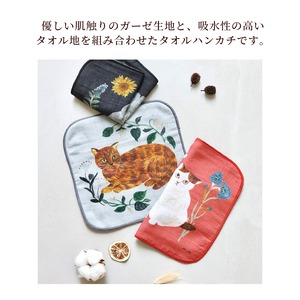 松尾ミユキさんの描く個性豊かなネコと植物が目をひく、とても愛らしいタオルハンカチです♪ 表は肌触りの優しいガーゼ生地、裏は吸水性の高いタオル地を使用。柔らかくて、ポケットに入れやすいサイズのハンカチです。 猫好きさんへのプチギフトとしてもおすすめです。