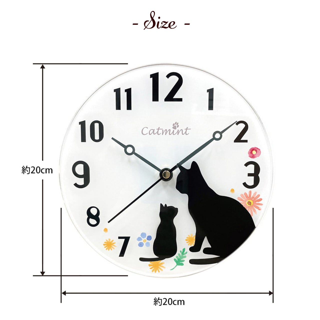 親子猫のシルエットデザインがかわいいウォールクロックです♪