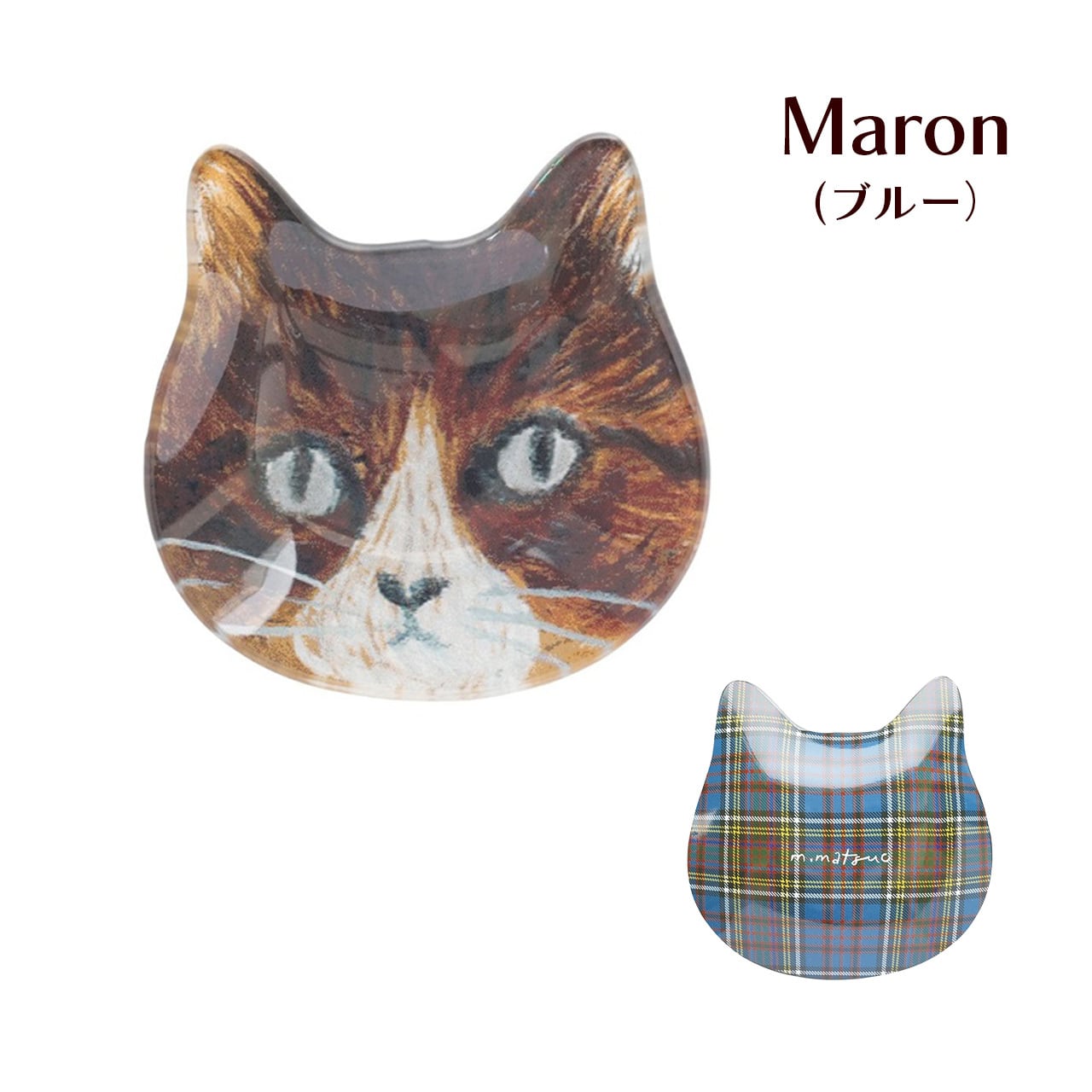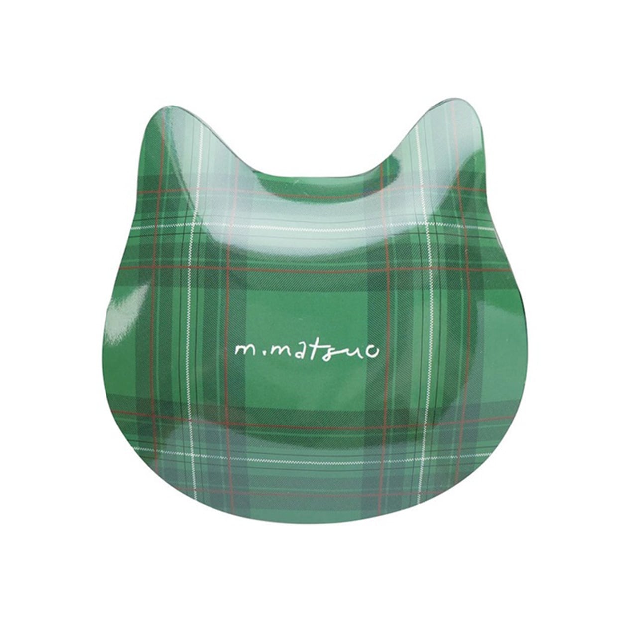 日常生活にちょこんとユーモアを添えてくれる、松尾ミユキさんのネコ顔ガラスプレートです。裏面にもチェック柄をあしらっていて、どの角度から見ても楽しめるデザインに仕上がっています。