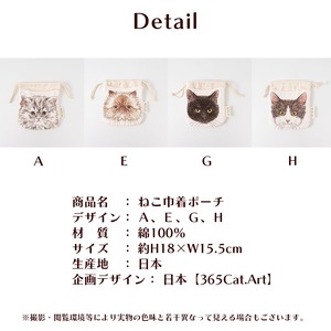 ねこ 巾着 ポーチ 365Cat.Art 日本製 猫柄 小物入れ 猫好き 人気
