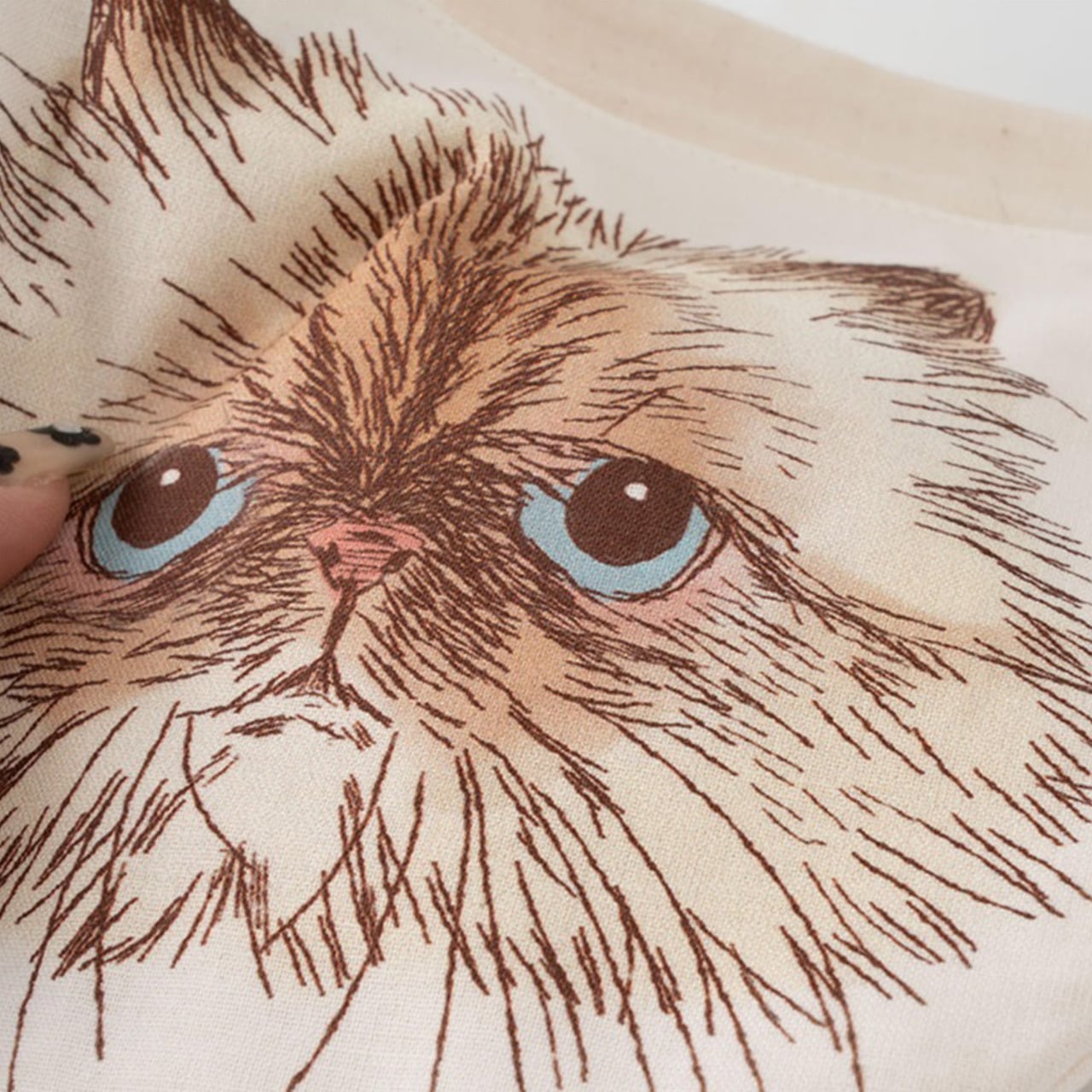 両面デザイン&ブランドロゴネームもついていて、隅々まで可愛い仕上がりです。日本製の綿100%の生地で、さらりとした肌触りが気持ちよく、日常使いにぴったりです。猫好きのお友達へのプレゼントにしても喜ばれそうです。