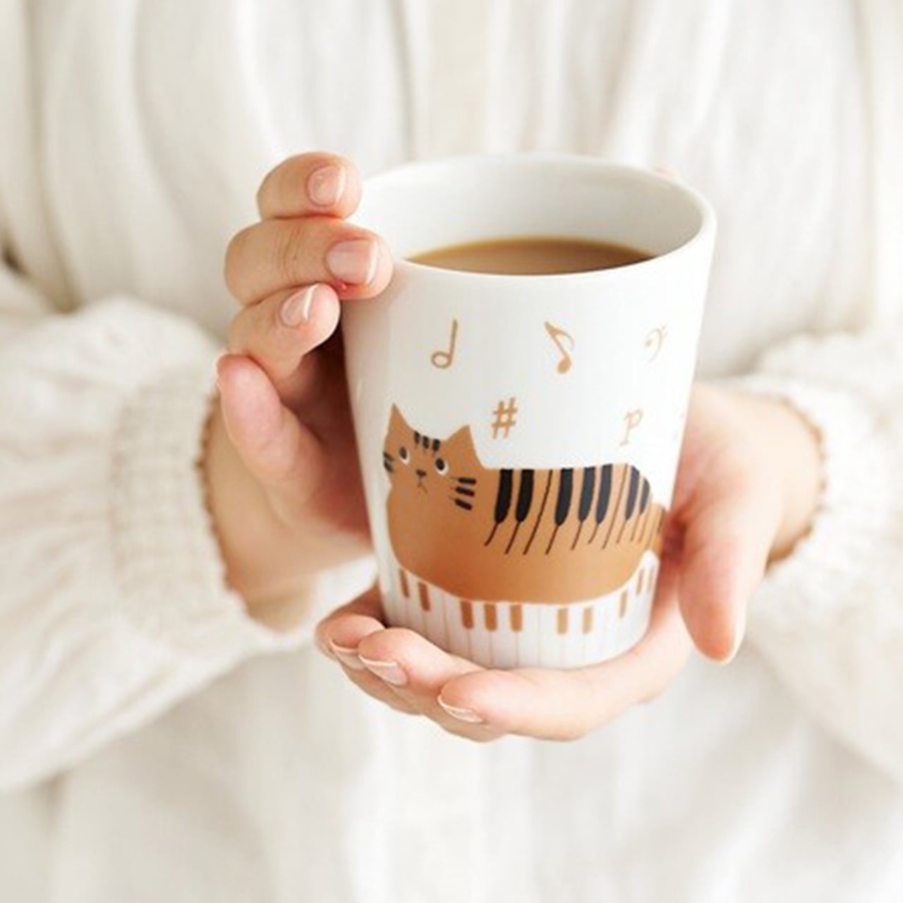 #タンブラー #食器 #コップ #グラス #ティータイム #お茶 #陶器 #磁器 #ねこ #かわいい #とらねこ #ピアノ #鍵盤 #音楽 #キッチングッズ #ギフト #プレゼント #猫好き #猫雑貨 #猫グッズ #日用品 #352