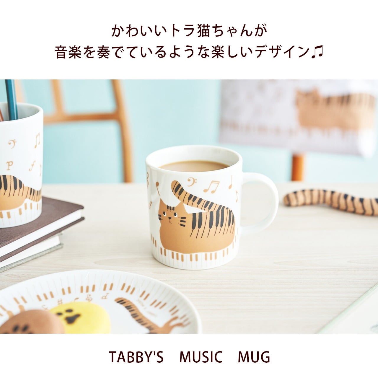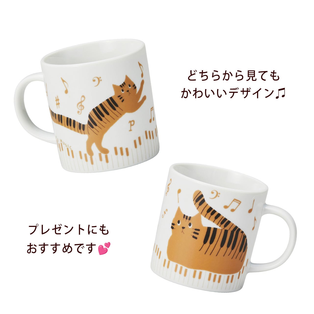 猫柄 マグカップ ティーカップ 食器 ねこ 猫 かわいい とらねこ ピアノ