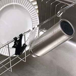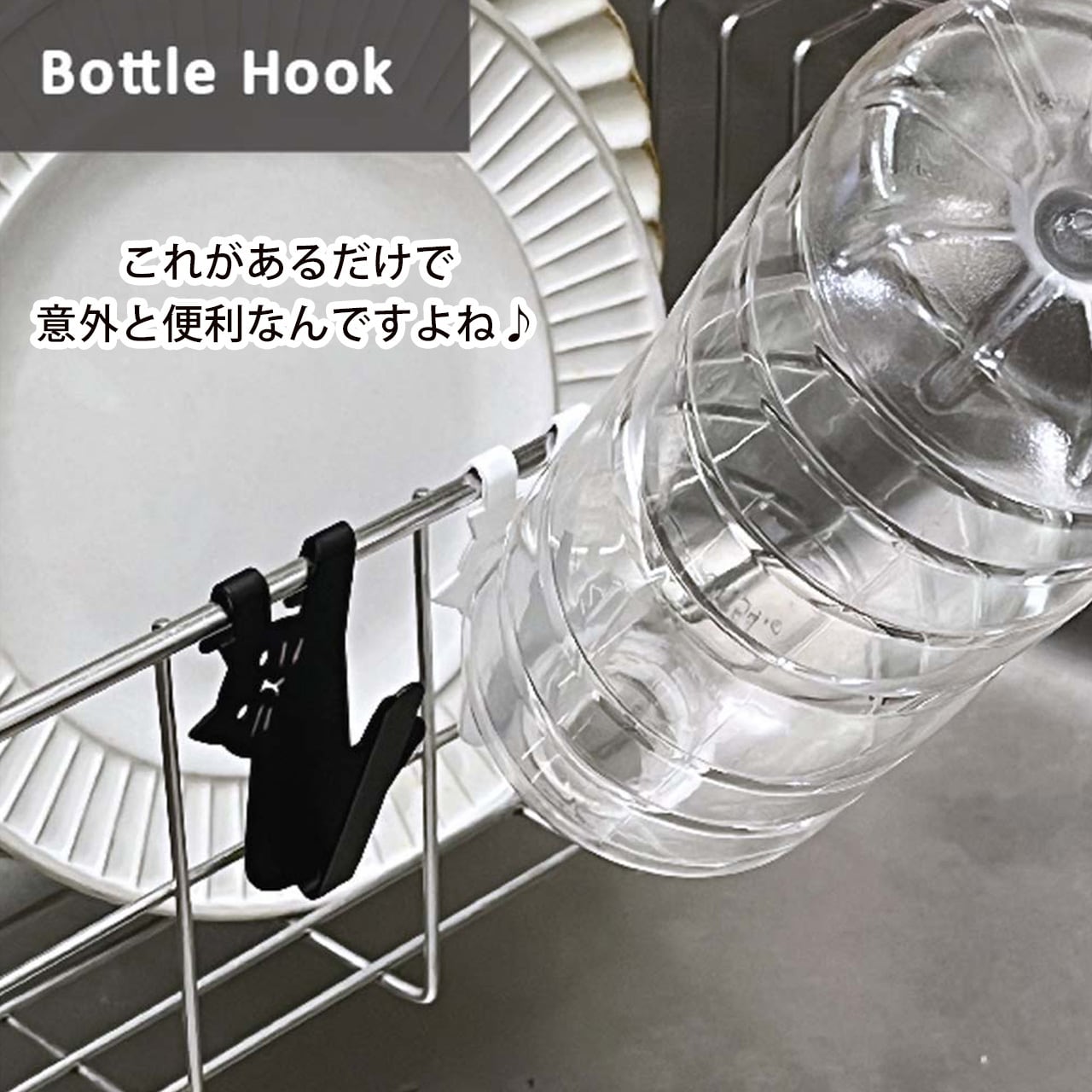 ぶら下がった姿がとっても可愛いボトルフックは、水切りカゴに引っ掛けて、ペットボトルやミニ水筒の水切りに活躍します。