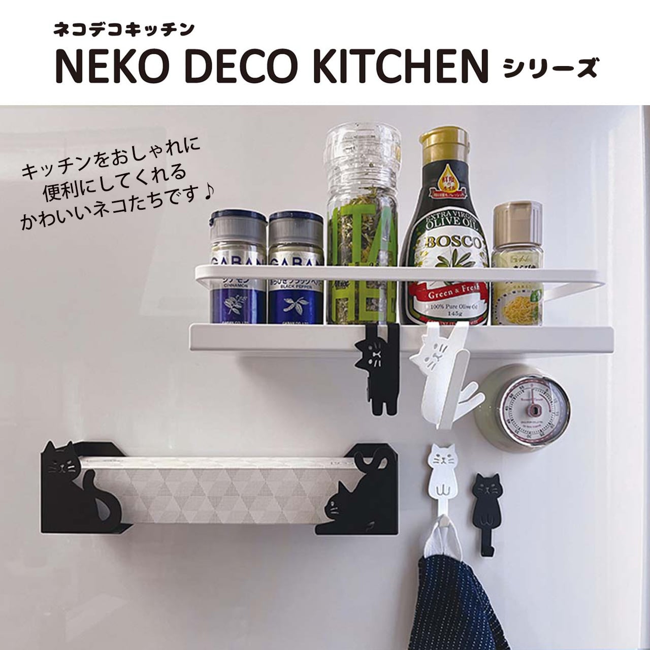 スチール製の猫型フックやホルダーが揃った便利なキッチン雑貨【ネコデコキッチン】シリーズ。モノトーンカラーの猫たちはキッチンのちょっとしたアクセントに♪