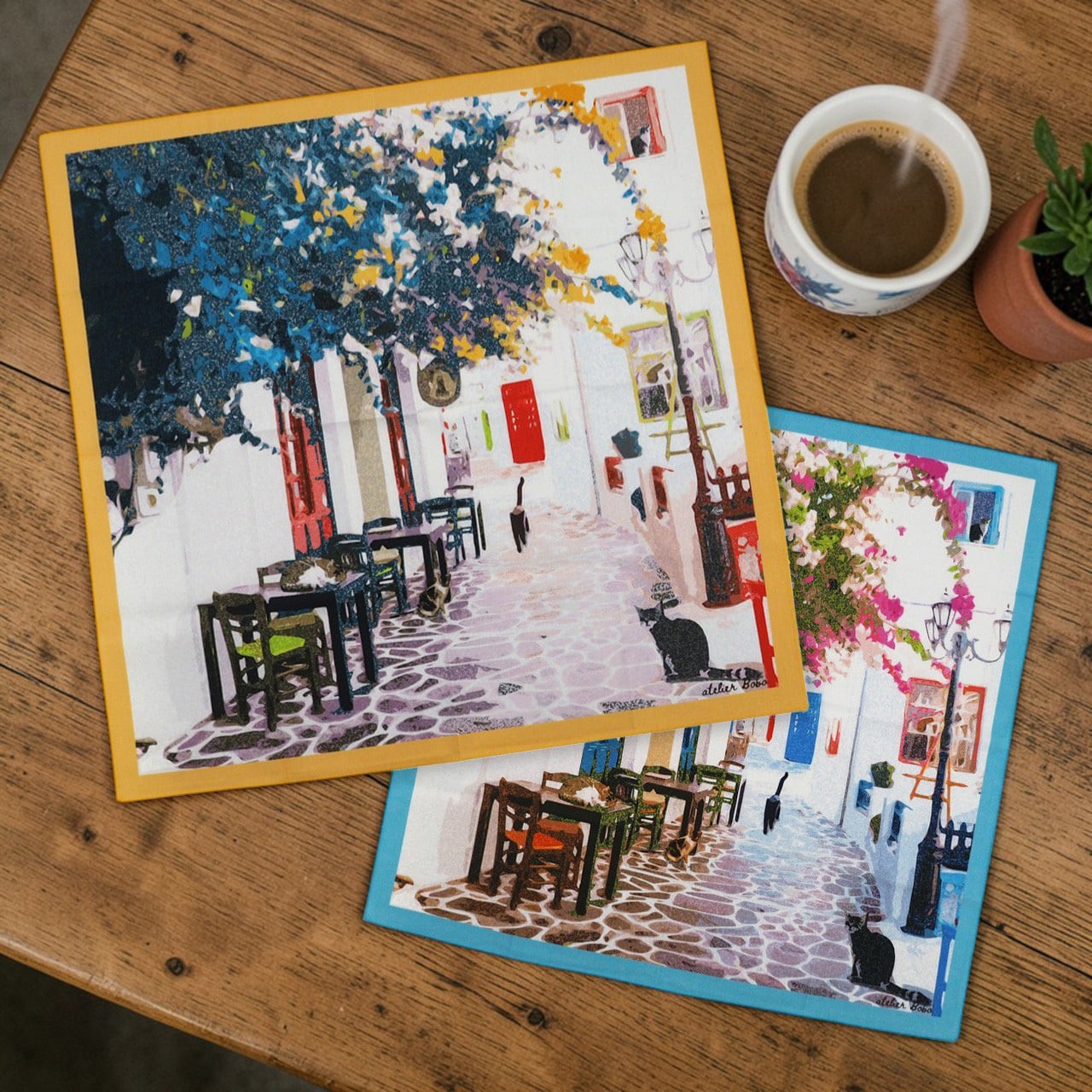 ハンカチとして使うのはもちろん、ファッションアイテムとしてスカーフのように身に着けたり、お弁当を包むランチクロスとして使うのもおすすめです。 猫たちが街並みにスッと馴染んでいる、情緒あふれる風景に釘付けになりますね。 おしゃれな帯付きなので、猫好きさんへのプレゼントにもおすすめです♪