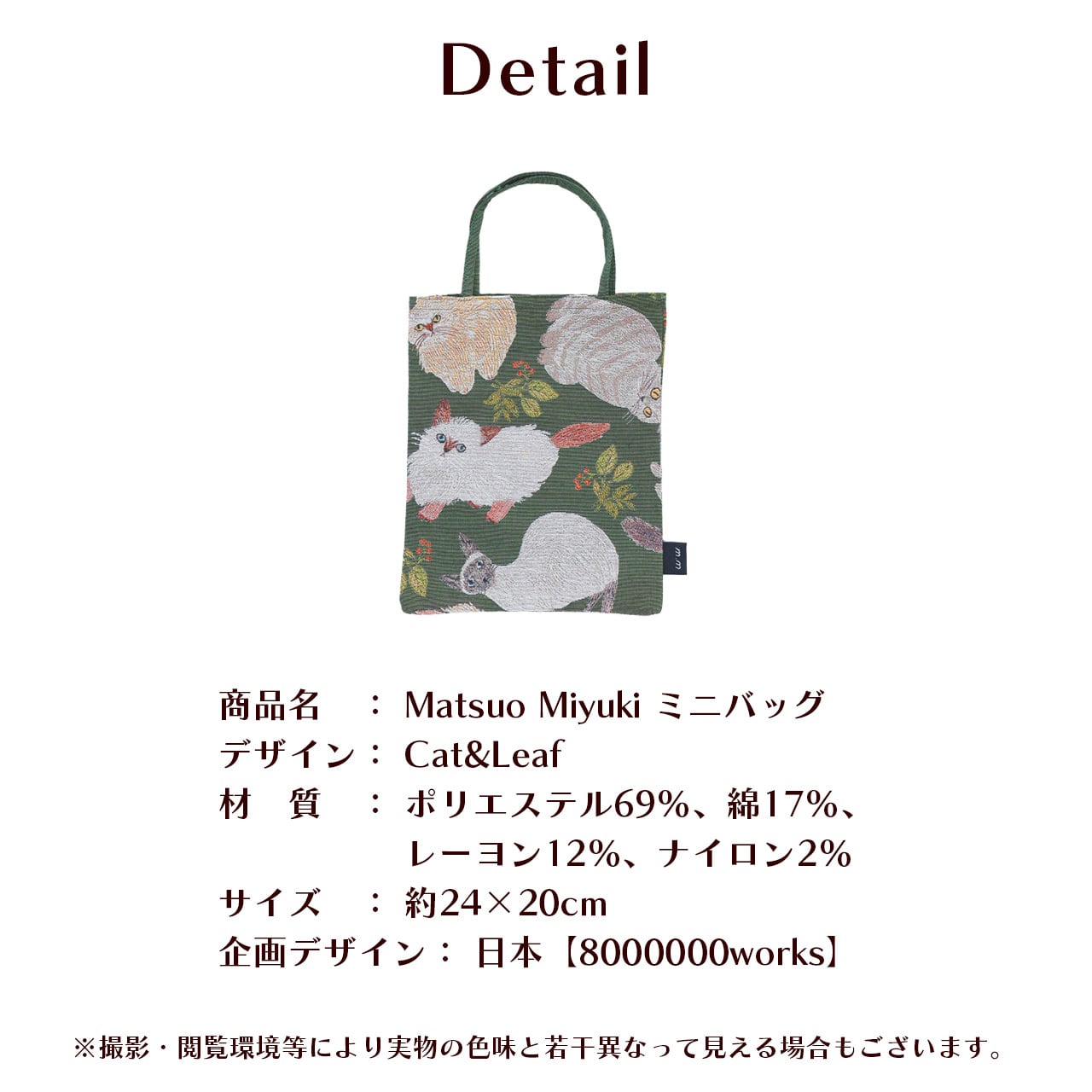 松尾ミユキ 猫柄 ミニバッグ Cat&Leaf ミニトート サブバッグ 猫好き プレゼント